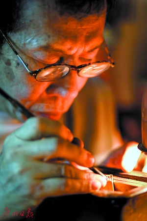 燙金絲印、公章膠印、原子印章……在和平西路9號有一家毫不起眼的刻章店——秋記刻章工藝,這里記錄著一段百年三代人的篆刻家族史。19世紀(jì)末期,叔公項(xiàng)信南隨著戲班來到廣州,成為一位金石篆刻名家;20世紀(jì)初,幼年喪父的項(xiàng)少南來到省城投奔叔叔項(xiàng)信南,也成為知名篆刻藝人,直到90歲高齡仍篆刻不輟;上世紀(jì)60年代,項(xiàng)少南之子項(xiàng)頌秋子承父業(yè),如今已入行57年。如今,隨著機(jī)器刻章的興起,從秋哥變成秋叔的71歲項(xiàng)頌秋卻面臨著手藝失傳?!叭绻幸懔Φ娜讼雽W(xué),我愿意免費(fèi)教學(xué)?!彼f。