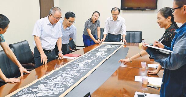 現(xiàn)場展示剪紙藝術(shù)作品《深圳上河圖》(局部)。