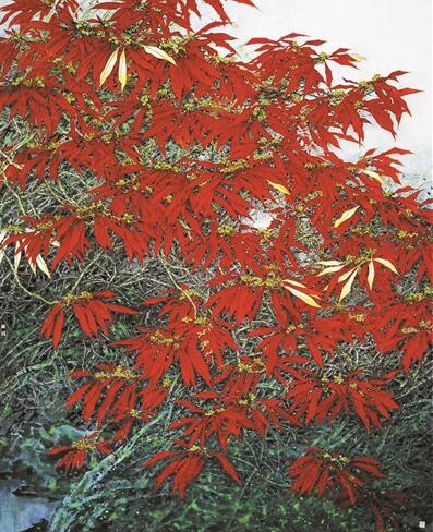 據(jù)閆國(guó)星介紹,這幅作品是他的老師給他布置的“命題作文”,為了完成作品,他特地坐飛機(jī)去西雙版納觀察野生一品紅,并在那里住了一個(gè)月,專(zhuān)門(mén)畫(huà)這個(gè)題材。因?yàn)轭}材新穎,傳統(tǒng)的筆墨無(wú)法表達(dá)其神韻,因此在畫(huà)法上,閆國(guó)星進(jìn)行了大膽創(chuàng)新,在傳統(tǒng)畫(huà)法中融入現(xiàn)代畫(huà)法,最終這幅佳作才得以問(wèn)世。