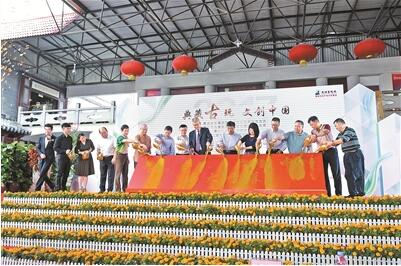 領(lǐng)導(dǎo)和嘉賓將金沙倒入啟動(dòng)儀式,一起為第33屆全國(guó)古玩珠寶藝術(shù)品交流會(huì)啟幕。