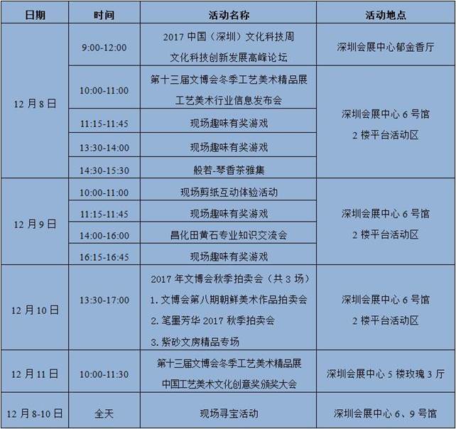 附:第十三屆文博會(huì)冬季工藝美術(shù)精品展暨2017中國(深圳)文化科技周活動(dòng)安排