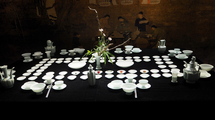 開幕式前,與會領(lǐng)導(dǎo)和嘉賓一同觀看了本次展覽中展出的展品,并饒有興致地觀看了瓷樂表演和非物質(zhì)文化遺產(chǎn)傳承人制瓷技藝表演。