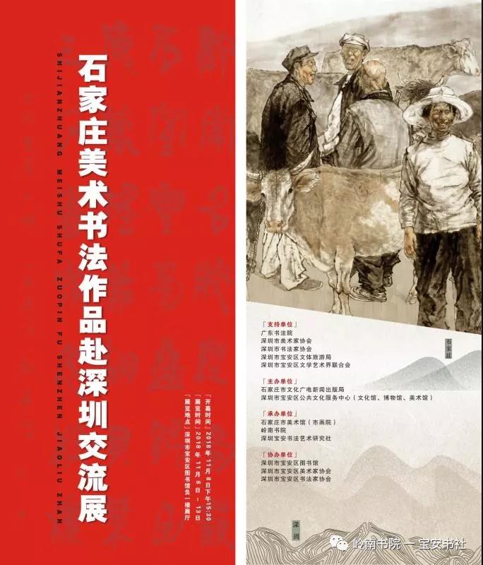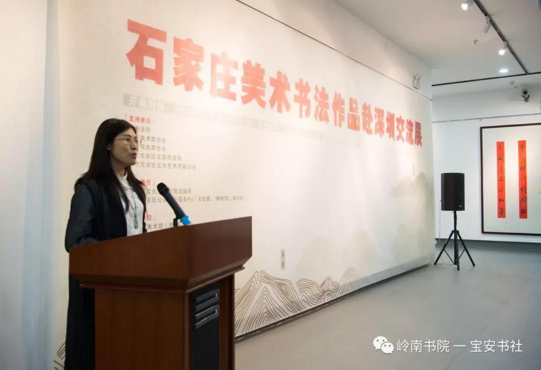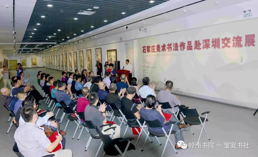 2018年11月8日下午15:00,由石家莊市文化廣電新聞出版局、深圳市寶安區(qū)公共文化服務中心(文化館、博物館、美術館)主辦,石家莊市美術館(市畫院)、嶺南書院、深圳寶安書法藝術研究社承辦,深圳市寶安區(qū)圖書館、寶安區(qū)美協(xié)、寶安區(qū)書協(xié)協(xié)辦并得到深圳市書法家協(xié)會、美術家協(xié)會、寶安區(qū)文體旅游局、寶安區(qū)文聯(lián)的大力支的 “ 石家莊美術書法作品赴深圳交流展 ” 在深圳市寶安區(qū)圖書館負一樓展廳隆重開幕——