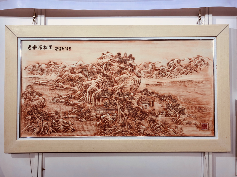 這是曹愛(ài)勤首次參加深圳文博會(huì),帶來(lái)了她所創(chuàng)作的陶瓷、篆刻、書(shū)畫(huà)等多種形式的藝術(shù)作品,可以看到其不同形式作品的創(chuàng)作技法、主題、表現(xiàn)手法等均有較大差異,充分體現(xiàn)了曹愛(ài)勤在陶瓷藝術(shù)道路上追求卓越、勇于創(chuàng)新的新時(shí)代大國(guó)工匠精神。在其創(chuàng)作中,特別是作為中國(guó)陶瓷重要組成部分的陶瓷雕刻作品《色靜深松里》、《八仙過(guò)海》,承載了國(guó)畫(huà)、雕刻、裝飾等綜合性藝術(shù)手法,每件作品都充分體現(xiàn)出工匠技能,堪稱(chēng)學(xué)貫中西、熔鑄古今之珍品。