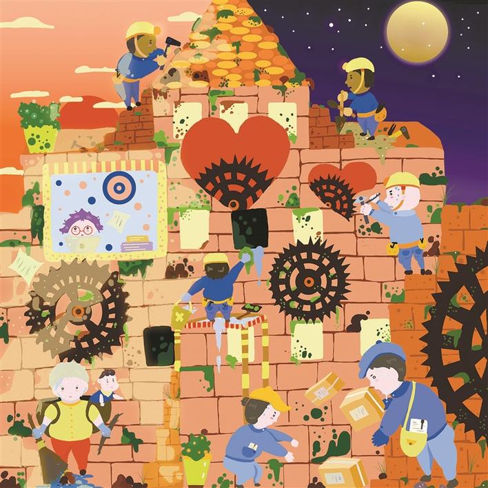 朱求真介紹說,本次展覽是插畫行業(yè)協(xié)會與國內(nèi)首個勞務(wù)工主題的博物館首次攜手,以勞務(wù)工為主題,將插畫與“城市印記”相結(jié)合,以城市、人物、生活三個單元從一個全新的角度描繪城市和城市建設(shè)者,生動地展現(xiàn)城市與人之間的互動和關(guān)系,用插畫為勞務(wù)工塑像,用藝術(shù)贊美城市與城市建設(shè)者。