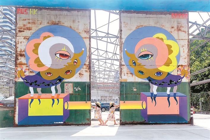 在城市公共空間中,涂鴉藝術不僅是一種重要的人文景觀,同時還能給人一種視覺享受,使單一的生活變得富有色彩。來自中國香港的全職藝術家彭怡擅長用涂鴉進行故事創(chuàng)作,作品《雙觀》以左右對稱相望的停車場守護神的形象感染車主與行人,傳達平穩(wěn)冷靜的力量。同樣來自中國香港的涂鴉藝術家曾昭昶,利用文字涂鴉作品的視覺誤差,嘗試突破停車格的物理范圍,將平面轉為立體,帶來作品《內&外》。