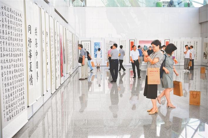 深圳特區(qū)報(bào)訊(記者尹春芳/文胡蕾/圖)一幅幅洋溢著激情的書畫作品,飽含對時(shí)代的歌頌。為慶祝中華人民共和國成立七十周年,由深圳市書畫家協(xié)會(huì)策劃,并聯(lián)合深圳民族精神和中國發(fā)展研究中心主辦,深圳市嘉鑫輝煌公司投資有限公司承辦,深圳汕尾商會(huì)協(xié)辦的“向祖國致敬——深圳書畫作品展暨感恩筆會(huì)”于昨天下午在深圳市民中心C禮廳開幕?,F(xiàn)場高朋滿座,氣氛熱烈,彌漫著濃厚的藝術(shù)氣息,展現(xiàn)了鵬城深厚的藝術(shù)底蘊(yùn)。