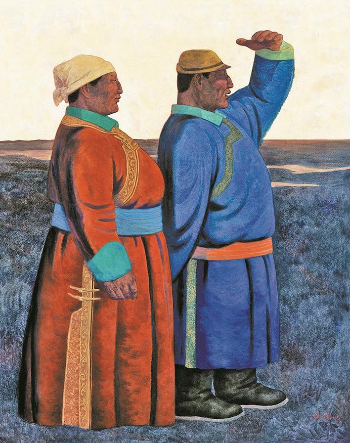 頡元芳的《遠方》表現(xiàn)了內(nèi)蒙古西北草原民族的人文情感和真實的生活狀態(tài);向園的《夏風(fēng)》運用浪漫主義和象征主義的創(chuàng)作手法,讓我們回到一種自然、安寧、和諧的畫境之中;奚忠恕的《天路》,讓我們直面感受到面對“最美奮斗者”,用畫筆為他們點贊;吳登軍的《遺失的世界系列——三十六》呈現(xiàn)了他對環(huán)境問題的思考。
