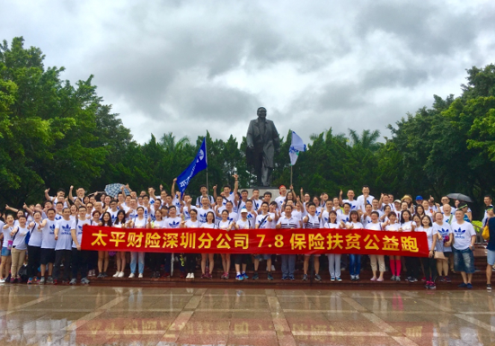 活動(dòng)期間,深圳分公司積極組織員工參加公益跑活動(dòng),每日捐贈(zèng)里程。7月8日當(dāng)天,深圳分公司特別組織公司數(shù)百名員工至蓮花山公園開(kāi)展“7.8公里扶貧公益跑”活動(dòng),縱使天降驟雨依然抵擋不住太平員工踐行公益的熱情,為雨中的公園增添了一道靚麗的“太平彩虹”。