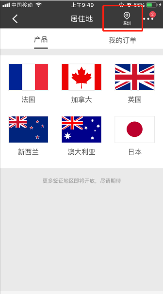 目前,深圳地區(qū)用戶可以辦理法國、加拿大、英國、新西蘭、澳大利亞、日本六個國家的簽證,后續(xù)將有更多簽證地區(qū)開放。