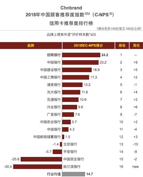 今年1月,2018年C-NPS顧客最推薦品牌大獎頒獎典禮舉行,C-NPS中國顧客推薦度指數(shù)是反映消費(fèi)者愿意向他人推薦企業(yè)產(chǎn)品或服務(wù)的程度。頒獎典禮上,招行信用卡榮獲信用卡行業(yè)顧客推薦度指數(shù)第一名。
