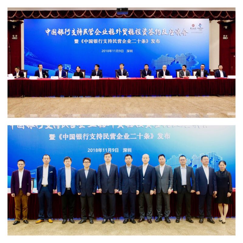 今年11月1日,習(xí)近平總書記召開民營企業(yè)座談會后,中國銀行將支持民營企業(yè)發(fā)展擺在了更加重要的位置。11月9日,“中國銀行支持民營企業(yè)穩(wěn)外貿(mào)穩(wěn)投資簽約及座談暨《中國銀行支持民營企業(yè)二十條》發(fā)布會”在中國銀行總行主會場及9個分會場同步舉行。中行深圳市分行按照總行統(tǒng)一部署,邀約邁瑞醫(yī)療、比亞迪、海普瑞、歐菲科技、欣旺達、信維通信、立訊精密、長園集團、華強集團、裕同科技等10家民營企業(yè)參會,并簽署戰(zhàn)略合作協(xié)議。11月15日,中行深圳市分行召開黨委(擴大)會議,研究進一步全面加強黨的建設(shè),集中學(xué)習(xí)了習(xí)近平總書記視察廣東和在民營企業(yè)座談會上的重要講話精神,提高對支持民營企業(yè)發(fā)展的思想認(rèn)識水平,將支持民營企業(yè)發(fā)展作為貫徹落實黨的十九大精神和總行發(fā)展戰(zhàn)略的具體行動。11月23日,中行深圳市分行召開《中國銀行支持民營企業(yè)二十條措施》政策解讀及宣導(dǎo)工作會議,提出落實總行“支持民營企業(yè)二十條”的十項重點工作。