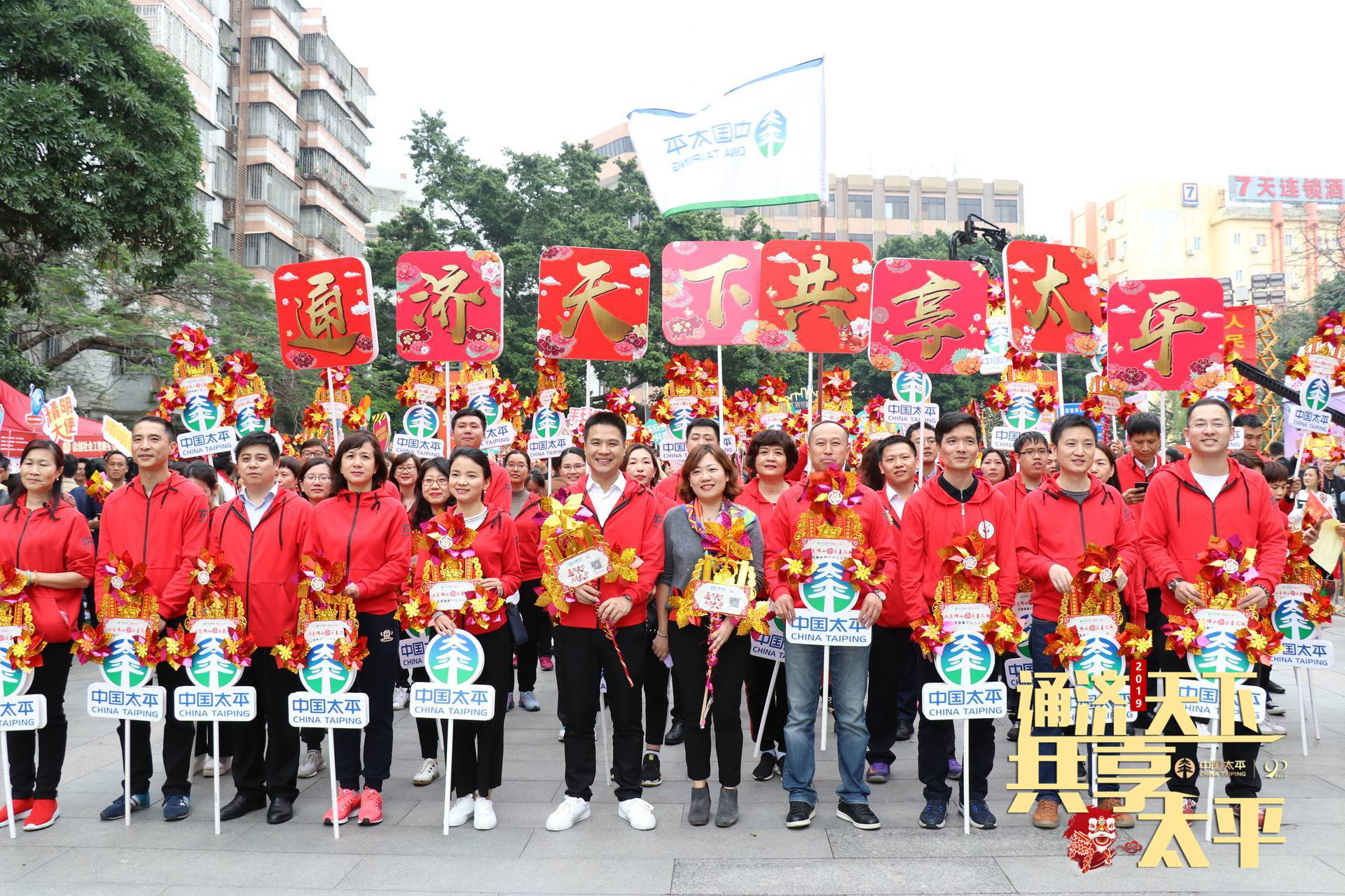 當日下午,在佛山市領導宣布活動啟動后,太平人壽佛山分公司、太平財險佛山中心支公司、太平養(yǎng)老佛山中心支公司等50名代表組成企業(yè)方陣團,與市內(nèi)慈善先進人物、市直機關人員代表、愛心公益組織、市民代表等12個方陣上萬人組成浩浩蕩蕩的隊伍,從佛山市政府出發(fā),一手拿著金燦燦的風車和宣傳標語牌,一邊熱情高呼“通濟天下·共享太平”的宣傳口號通過通濟橋,向市民展現(xiàn)中國太平良好的精神風貌,引來兩邊路人的駐足關注。根據(jù)官方數(shù)據(jù)顯示,當天共計79.52萬人參與行通濟。