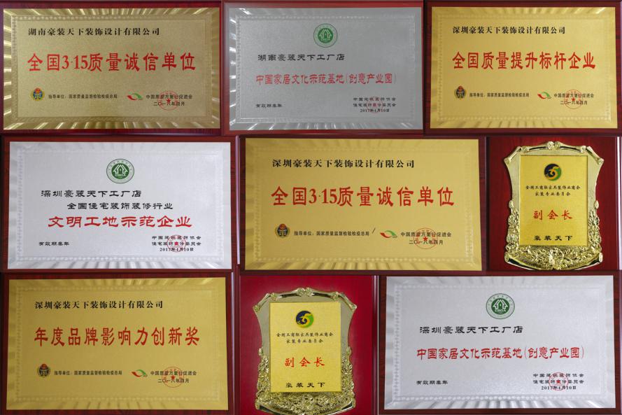 豪裝天下裝飾集團所獲榮譽資質(zhì)