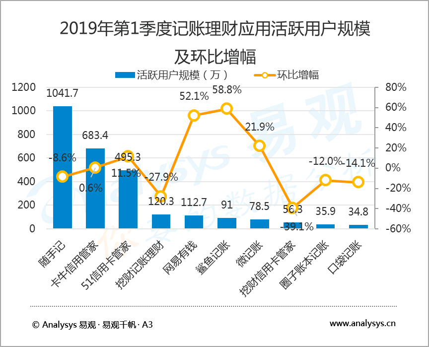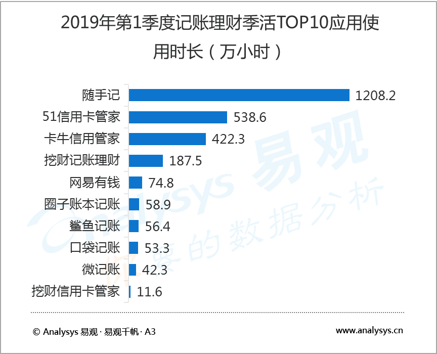 5月24日,知名互聯(lián)網(wǎng)數(shù)據(jù)研究機(jī)構(gòu)易觀 Analysys發(fā)布了2019年第1季度記賬理財(cái)行業(yè)報告,數(shù)據(jù)顯示,2019年第1季度,在國內(nèi)記賬類應(yīng)用中,隨手記以1041.7萬活躍用戶規(guī)模蟬聯(lián)榜首,卡牛信用管家和51信用卡管家分別以683.4萬和495.3萬活躍用戶規(guī)模居行業(yè)二、三位。