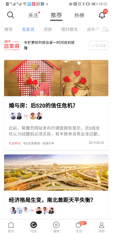?理財(cái)社區(qū):一個(gè)手把手教你投資理財(cái)?shù)牡胤?。這里不僅有精選的財(cái)經(jīng)資訊、理財(cái)大V的市場觀察,近期還上線了“名家說”欄目,邀請實(shí)力派專家就熱點(diǎn)話題各抒己見。在了解專家觀點(diǎn)的同時(shí),你還能站隊(duì)表達(dá)自己的態(tài)度,輕松又有趣。