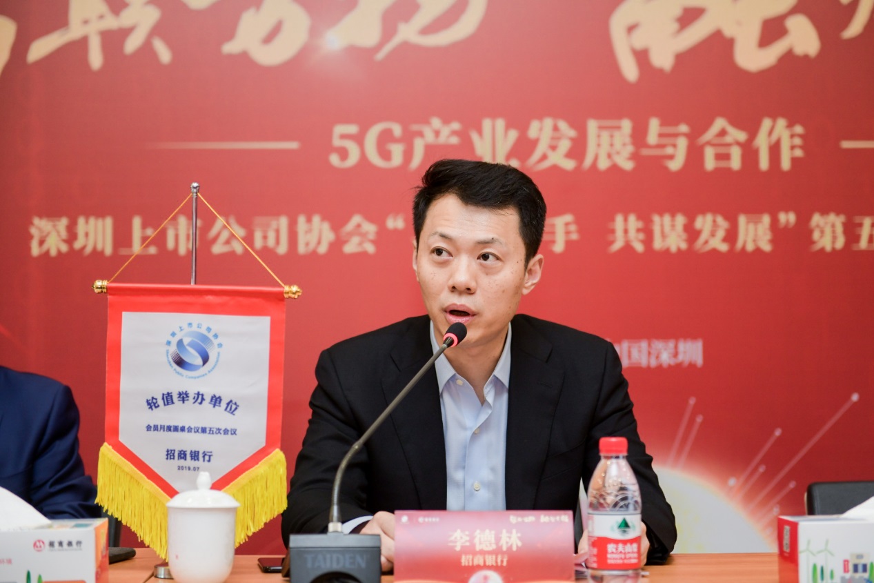 7月11日下午,由深圳上市公司協(xié)會(huì)牽頭、招商銀行股份有限公司主辦的“智聯(lián)萬物,融智有招——5G產(chǎn)業(yè)發(fā)展與合作”會(huì)員月度圓桌會(huì)議第五次會(huì)議在招商銀行深圳分行大廈3樓多功能廳成功舉行。深圳市證監(jiān)局處長梁文利、協(xié)會(huì)會(huì)長麥伯良、協(xié)會(huì)執(zhí)行副會(huì)長兼秘書長黃鐵軍、招商銀行總行行長助理李德林、總行董事會(huì)辦公室主任霍建軍等領(lǐng)導(dǎo)出席了本次活動(dòng),本次活動(dòng)邀請了來自信息技術(shù)、制造、金融、地產(chǎn)等5 G行業(yè)的40家上市公司董事長、總經(jīng)理等60余人參加活動(dòng),行業(yè)專家齊聚一堂,共話5G發(fā)展浪潮中的機(jī)遇與挑戰(zhàn)。