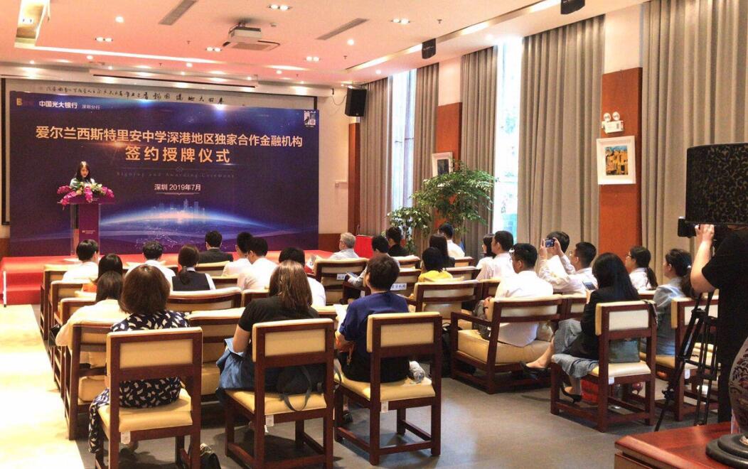 中國光大銀行深圳分行與愛爾蘭頂級私立男校簽署獨(dú)家合作授牌儀式現(xiàn)場