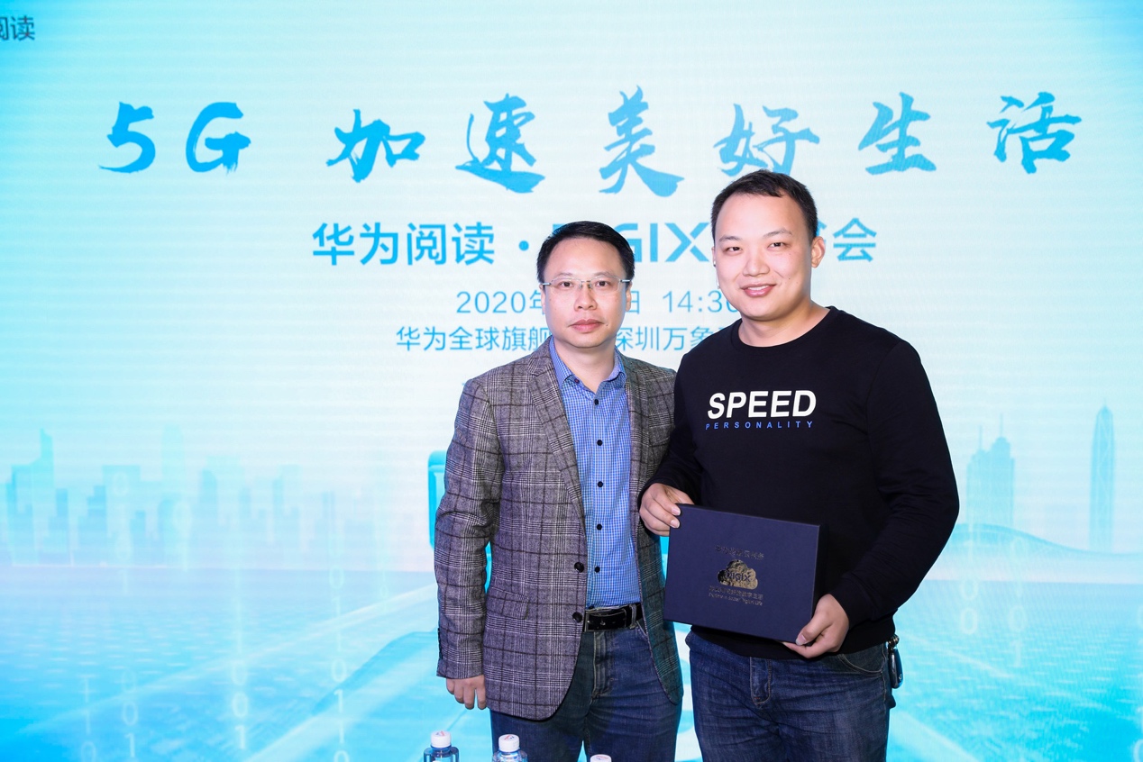 活動(dòng)現(xiàn)場(chǎng),王喜文被授予華為閱讀領(lǐng)讀人并頒發(fā)了領(lǐng)讀人證書(shū),與華為閱讀共同倡導(dǎo)“全民閱讀計(jì)劃”。并且,譚東暉還為王喜文贈(zèng)送一部華為Mate30 Pro5G版手機(jī)與華為終端云服務(wù)DIGIX會(huì)員禮盒,暢享5G,探索美好未來(lái)。王喜文還為讀者們推薦了新書(shū)《5G為人工智能與工業(yè)互聯(lián)網(wǎng)賦能》,并現(xiàn)場(chǎng)進(jìn)行簽贈(zèng),讓讀者可以更深入了解5G帶來(lái)的極致生活。