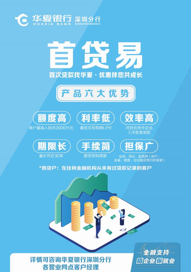 為滿足廣大中小微民營企業(yè)的資金需求,加大信貸投放精準(zhǔn)滴灌,華夏銀行創(chuàng)新推出“首貸易”產(chǎn)品,向首貸戶(是指在任何金融機(jī)構(gòu)從未有過貸款記錄的客戶)承諾“首次貸款找華夏,優(yōu)惠伴您共成長”的全方面、定制金融服務(wù)。“首貸易”產(chǎn)品具有“六大突出優(yōu)勢”,額度高、利率低、效率高、期限長、手續(xù)簡、擔(dān)保廣。