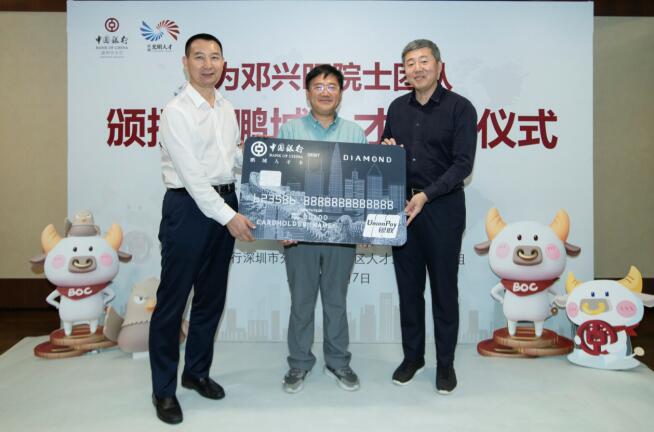 深圳新聞網(wǎng)·見圳客戶端2020年11月8日訊 昨日,深圳市光明區(qū)委常委、組織部部長(zhǎng)繩萬青,中國(guó)銀行深圳市分行副行長(zhǎng)韓竹代表深圳市光明區(qū)人才辦和中國(guó)銀行深圳市分行,為生物學(xué)家、美國(guó)國(guó)家科學(xué)院院士鄧興旺及部分團(tuán)隊(duì)成員頒發(fā)了“中銀鵬城人才卡”鉆石卡,這是全市范圍內(nèi)首張向在深院士發(fā)放的“中銀鵬城人才卡”,標(biāo)志著這張由光明區(qū)人才辦和深圳中行共同策劃推出的人才卡實(shí)現(xiàn)了市級(jí)認(rèn)定的各層級(jí)人才全覆蓋。鄧興旺院士是深圳市杰出人才獲得者、深圳市作物分子設(shè)計(jì)育種研究院院長(zhǎng)、深圳興旺生物種業(yè)有限公司董事長(zhǎng),他帶領(lǐng)團(tuán)隊(duì)2010年到深圳創(chuàng)業(yè),多年來在水稻領(lǐng)域取得兩項(xiàng)重大技術(shù)突破,其中“潔田模式”大規(guī)模市場(chǎng)示范面積達(dá)到50萬畝,有效加快了中國(guó)農(nóng)業(yè)的輕簡(jiǎn)化、現(xiàn)代化步伐。