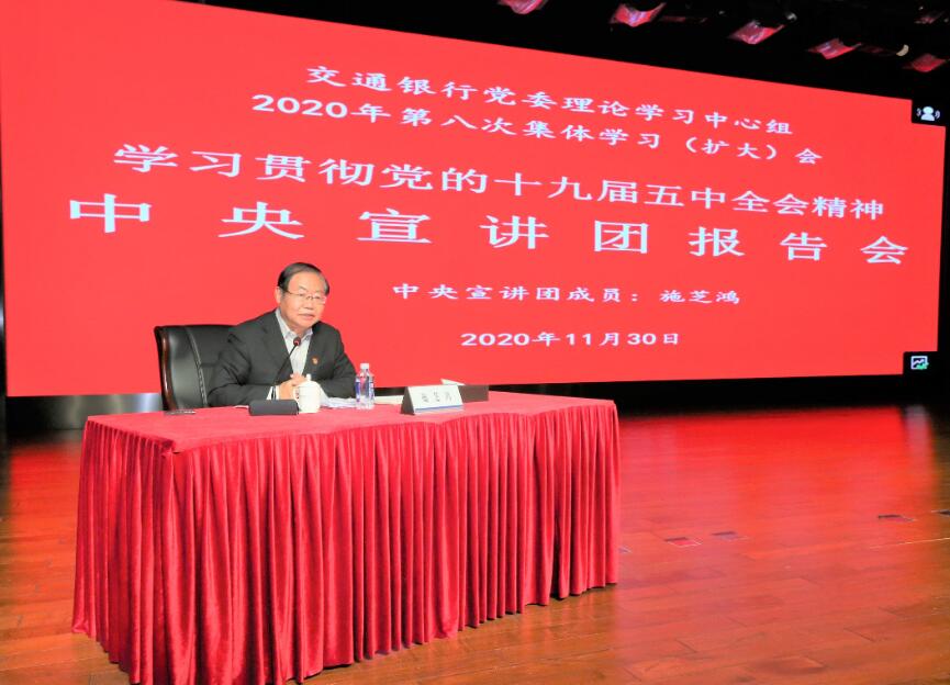 深圳新聞網(wǎng)·見圳客戶端2020年12月1日訊 昨日,交通銀行舉行學(xué)習(xí)貫徹黨的十九屆五中全會精神中央宣講團(tuán)報(bào)告會暨黨委理論學(xué)習(xí)中心組第八次集體學(xué)習(xí)(擴(kuò)大)會。中央宣講團(tuán)成員、中央政策研究室原副主任施芝鴻作宣講報(bào)告,黨委書記、董事長任德奇主持報(bào)告會。