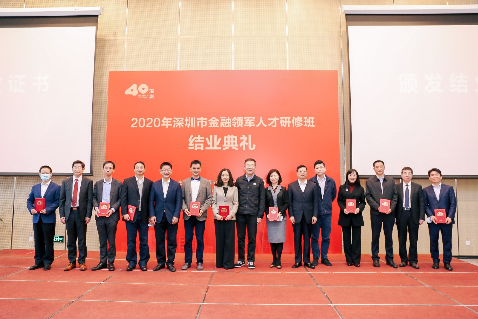 平生書記在致辭中表示,2020年是極不平凡的一年,是金融機構(gòu)積極主動作為、彰顯責任擔當?shù)囊荒辏彩巧钲诮鹑跇I(yè)逆勢而上,保持平穩(wěn)健康發(fā)展的一年,金融機構(gòu)對全市統(tǒng)籌疫情防控和經(jīng)濟社會發(fā)展作出了重要貢獻,金融業(yè)在全市經(jīng)濟增長實現(xiàn)V形反轉(zhuǎn)、率先翻正中發(fā)揮了“壓艙石”作用,這些成績來自每一位金融人才的拼搏奮斗,領(lǐng)軍人才為行業(yè)發(fā)展做出了積極的貢獻。研修班期間,學(xué)員們一起聆聽名家大咖講課、踴躍參加主題論壇、認真撰寫調(diào)研報告,還開展了閉門研討、名企考察、交流互訪等形式多樣的活動,既豐富了知識、開闊了眼界,也促進了交流、收獲了友誼,總體達到了預(yù)期效果,為全面實施“深圳百千萬金融人才培養(yǎng)工程”奠定了扎實基礎(chǔ)。他希望學(xué)員學(xué)思悟踐、學(xué)以致用,緊抓粵港澳大灣區(qū)、先行示范區(qū)“雙區(qū)驅(qū)動”和綜合改革試點的重大歷史機遇,聚焦制約行業(yè)發(fā)展重點難點問題,深入研究、謀篇破題,為深圳金融業(yè)高質(zhì)量發(fā)展做出更大貢獻。