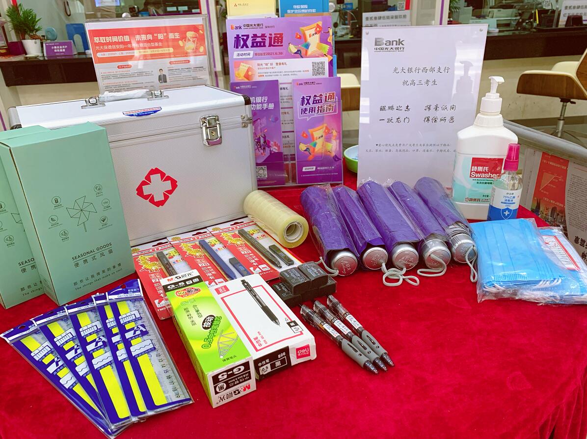 6月7日-8日期間,光大銀行深圳分行的一些支行網(wǎng)點(diǎn),出現(xiàn)了暖心的一幕——高考便民服務(wù)驛站免費(fèi)為附近考點(diǎn)的廣大考生與家長(zhǎng)提供部分文具、口罩、解暑藥品、茶水、便攜風(fēng)扇、遮陽(yáng)傘等便民物品。不少送考家長(zhǎng)等候期間在便民驛站停留并感受到細(xì)心的服務(wù),連連稱(chēng)贊銀行的服務(wù)人性化、貼心。