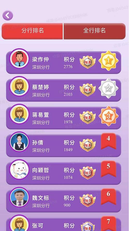 比賽由系統(tǒng)從題庫隨機(jī)抽取5道題目,并匹配在線員工進(jìn)行一對一挑戰(zhàn),考驗(yàn)員工的知識掌握情況和答題準(zhǔn)確度。根據(jù)積分情況,設(shè)置全行學(xué)習(xí)積分榜,鼓勵員工對標(biāo)學(xué)習(xí)情況,提升“知識段位”。