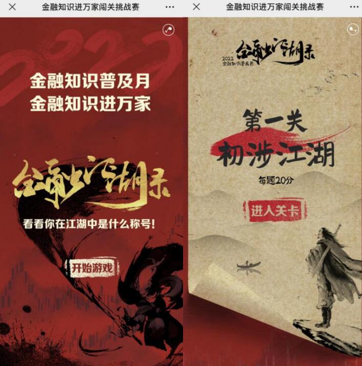 讀特客戶端·深圳新聞網(wǎng)2022年9月28日訊(記者 朱琳)“看,我得了90分,獲得的稱號是‘金融大俠’?!毙炖喜靡獾嘏e著手機(jī)向朋友展示自己游戲成果。原來,這是由太平人壽推出的一款名為“金融江湖錄”的金融知識闖關(guān)互動(dòng)小游戲。