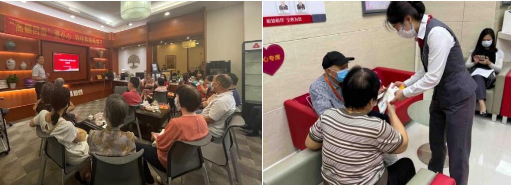 各網(wǎng)點(diǎn)邀請附近的老年客戶到行參與講座,以目前典型的養(yǎng)老騙局作為切入點(diǎn),通過播放分行自制養(yǎng)老防詐小短片,以生動(dòng)的語言向老年人揭示一些宣稱以房養(yǎng)老為名,誘騙老年人抵押房產(chǎn)購買“高收益”理財(cái)產(chǎn)品等進(jìn)行非法集資詐騙的陷阱,向老年人普及新型詐騙趨勢,拓寬信息交流渠道,充分發(fā)揮銀行金融知識(shí)宣傳的網(wǎng)點(diǎn)效應(yīng)。