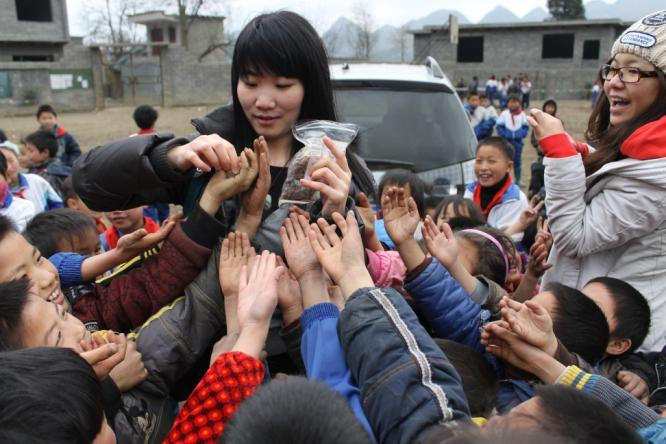 “我始終記得第一次去織金的情景。當(dāng)時(shí),我們從貴陽出發(fā),走了5個(gè)小時(shí)的盤山公路,2個(gè)小時(shí)坑坑洼洼的盤山小路才到。難以忘記的是破敗的教室里孩子們黝黑冰冷的小手,鼻子上掛著的兩條‘小蟲’,透著冬日寒風(fēng)的衣服上的破洞。他們半倚在簡(jiǎn)陋的桌椅邊直打哆嗦,卻依然因?yàn)槲覀兊牡絹砭`放著暖陽般的笑臉。”原廣發(fā)銀行深圳分行副行長(zhǎng)駱向東回憶起考察邊遠(yuǎn)村小時(shí)的情景,至今仍心疼不已。