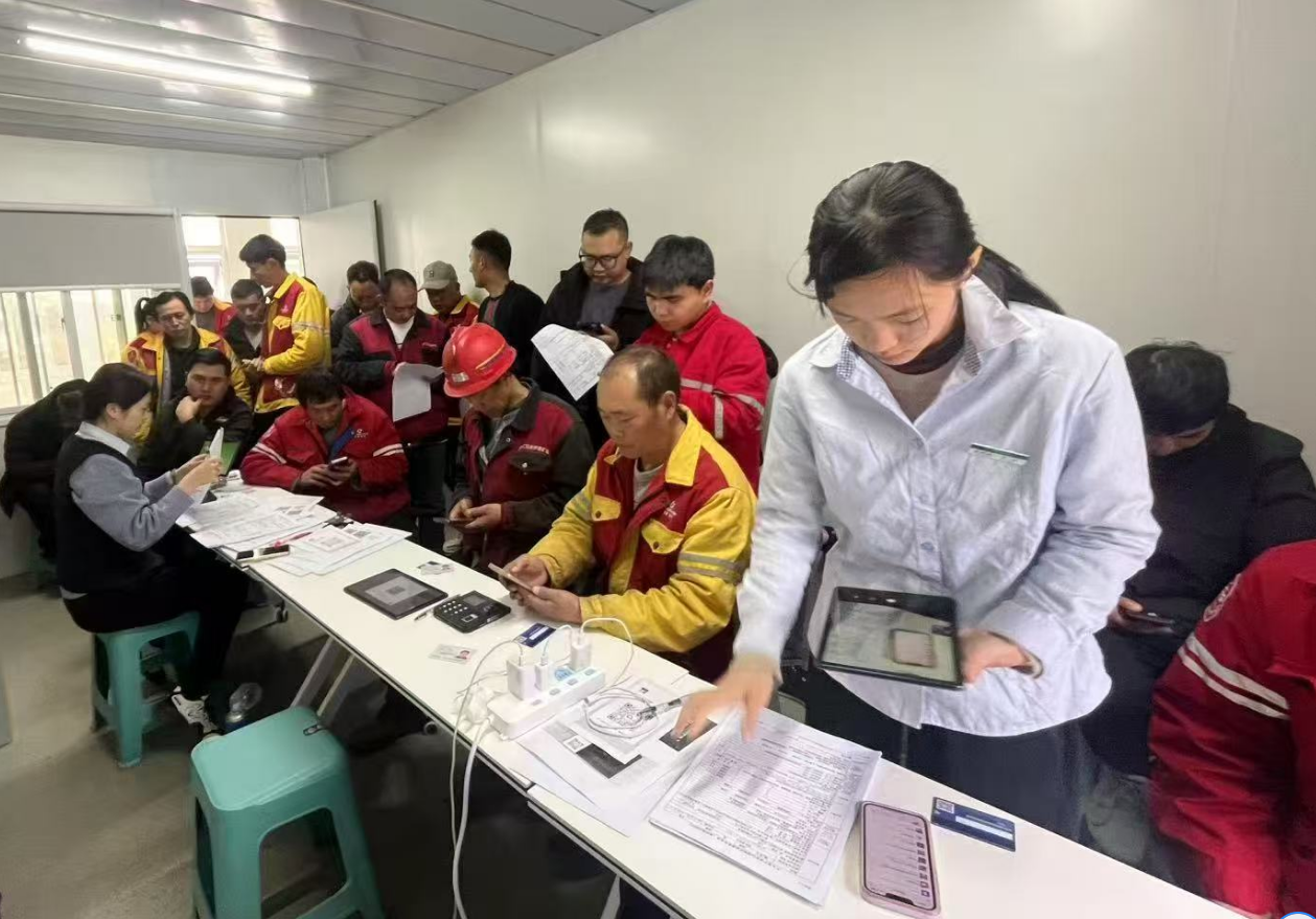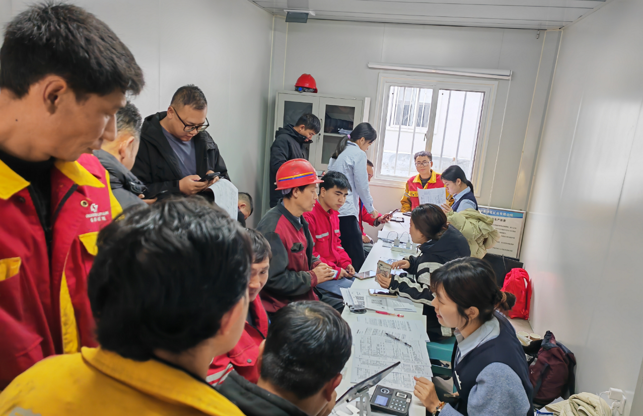 面對(duì)困難,陳嘉濤深知客戶需求無(wú)小事。他果斷決定帶隊(duì)前往現(xiàn)場(chǎng),為當(dāng)?shù)貑T工集中辦理銀行卡開(kāi)卡及工資代發(fā)相關(guān)手續(xù)。從繁華的深圳到偏遠(yuǎn)的高原,路途遙遠(yuǎn)、舟車勞頓,加上高原反應(yīng)帶來(lái)的身體不適,讓整個(gè)團(tuán)隊(duì)面臨嚴(yán)峻考驗(yàn)。但他們沒(méi)有絲毫退縮,抵達(dá)后便迅速搭建臨時(shí)服務(wù)點(diǎn),投入到緊張的工作中。