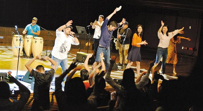 同是爵士樂,相對于4月8日的立陶宛音樂會(huì),14日晚古巴音樂會(huì)的畫風(fēng)大變。舞臺上下的互動(dòng)頻率和聽眾的參與熱情,為深圳音樂廳成立以來所僅見,這也是今年“一帶一路”國際音樂季迄今最熱鬧的演出。