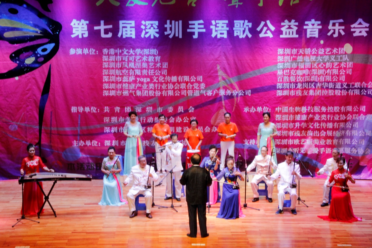 據(jù)悉,本屆手語歌公益音樂會(huì)由深圳市福田區(qū)宣傳文化體育事業(yè)發(fā)展專項(xiàng)資金資助,同時(shí)獲得市委宣傳部、市共青團(tuán)、市關(guān)愛辦、區(qū)精神文明辦的大力支持,由深圳市關(guān)愛殘友志愿者協(xié)會(huì)主辦,中國生物科技服務(wù)控股有限公司、深圳市健康產(chǎn)業(yè)類行業(yè)協(xié)會(huì)聯(lián)合黨委、深圳市升學(xué)文化傳播有限公司和深圳市殘友演出會(huì)展經(jīng)濟(jì)有限公司等單位聯(lián)合協(xié)辦。自2008年首屆手語歌公益音樂會(huì)舉辦以來,歷屆“深圳手語歌公益音樂會(huì)”都會(huì)邀請(qǐng)政府、企事業(yè)單位、社會(huì)團(tuán)體等學(xué)習(xí)手語歌舞、舉行大型公益匯演。(張俊達(dá))