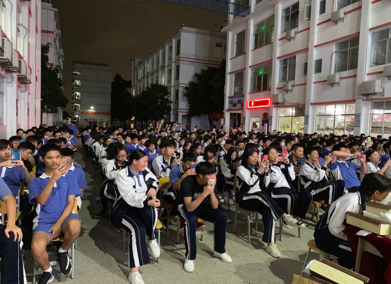 天還亮著,寶山大舞臺(tái)前已座無虛席,學(xué)生們精神抖擻,笑容可親,靜候一場文化饗宴。