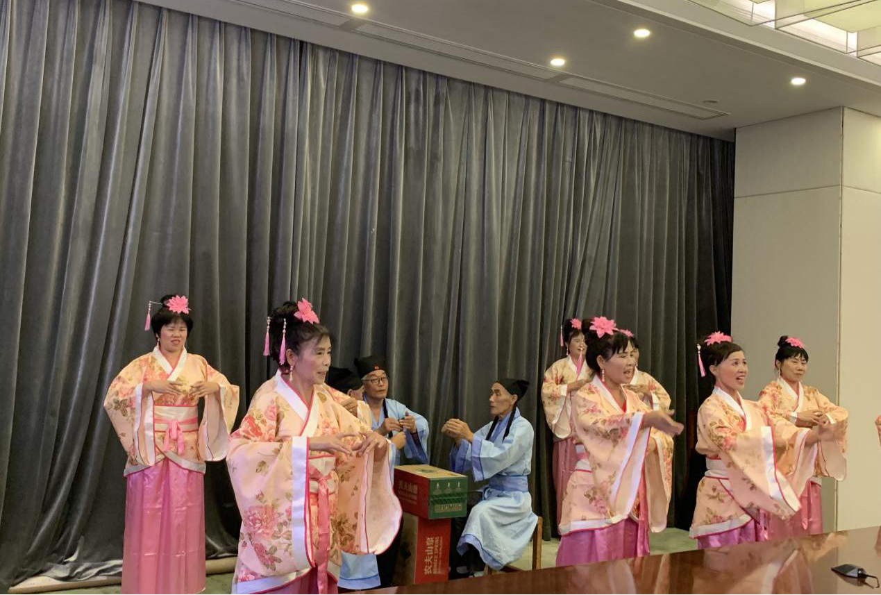 眾人矚目的文藝展演終于來(lái)了,社區(qū)居民的表演可圈可點(diǎn)、耐人尋味。旗袍秀詩(shī)誦《春江花月夜》,詩(shī)美、舞美、樂(lè)美、人更美,以故為新,別具一番味道;《將進(jìn)酒》詩(shī)舞誦也頗有看頭,從服裝、道具、編排處處有新意,足見(jiàn)大家的用心,將詩(shī)詞、舞蹈與音樂(lè)融于創(chuàng)作中,給在場(chǎng)居民帶來(lái)了耳目一新的觀賞體驗(yàn)。