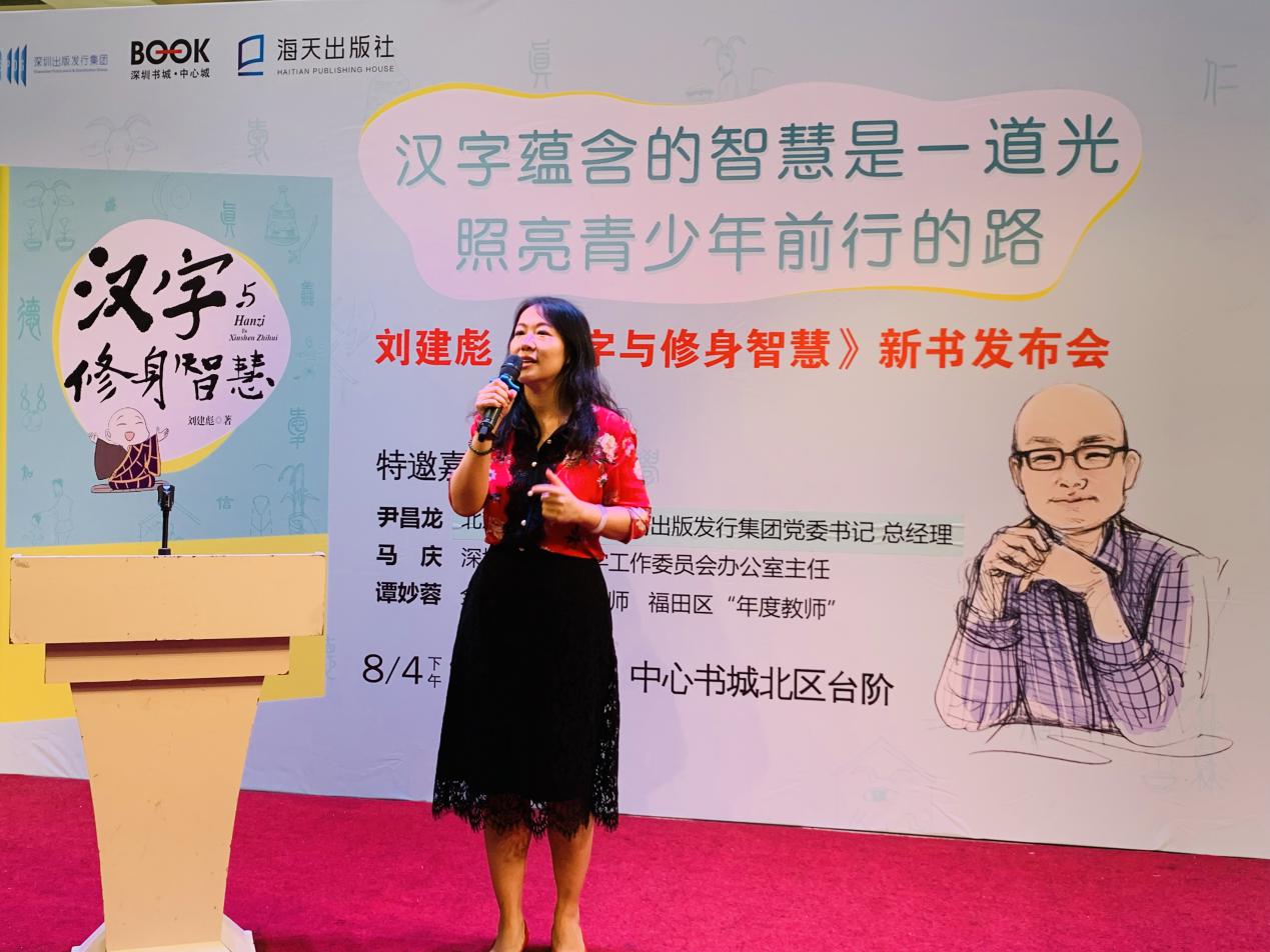 深圳出版發(fā)行集團(tuán)黨委書記、總經(jīng)理尹昌龍在發(fā)言中指出,漢字里蘊藏著中華文明的密碼,而《漢字與修身智慧》這本書恰是從漢字出發(fā),解讀中華文化的基因,以美德教育為旨?xì)w,有助于喚起我們對漢字的熱愛,對民族文化的自信。他向在場觀眾推薦這本書,并指其信息量大,兼具趣味性、可讀性與啟發(fā)性,值得細(xì)細(xì)品味。另外,馬慶主任表示,漢字投射的是古人的心靈,古人的智慧,古人的修養(yǎng),他贊嘆《漢字與修身智慧》一書為深圳的文化積累做出了貢獻(xiàn),并鼓勵親子共讀,共同成長。譚妙蓉老師也力薦此書,認(rèn)為書中漢字心能量中的小故事深入淺出,富含哲理,對青少年乃至成年人美德教育均有借鑒作用,并聲情并茂地朗誦了書中的《陋室銘》一文,她希望作者將來能創(chuàng)作出更多關(guān)于漢字的書,讓更多讀者感受到傳統(tǒng)文化的熏陶與滋養(yǎng)。