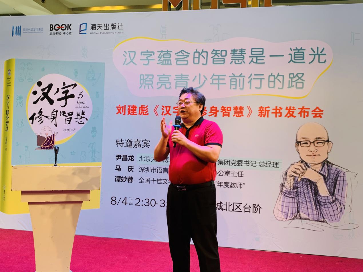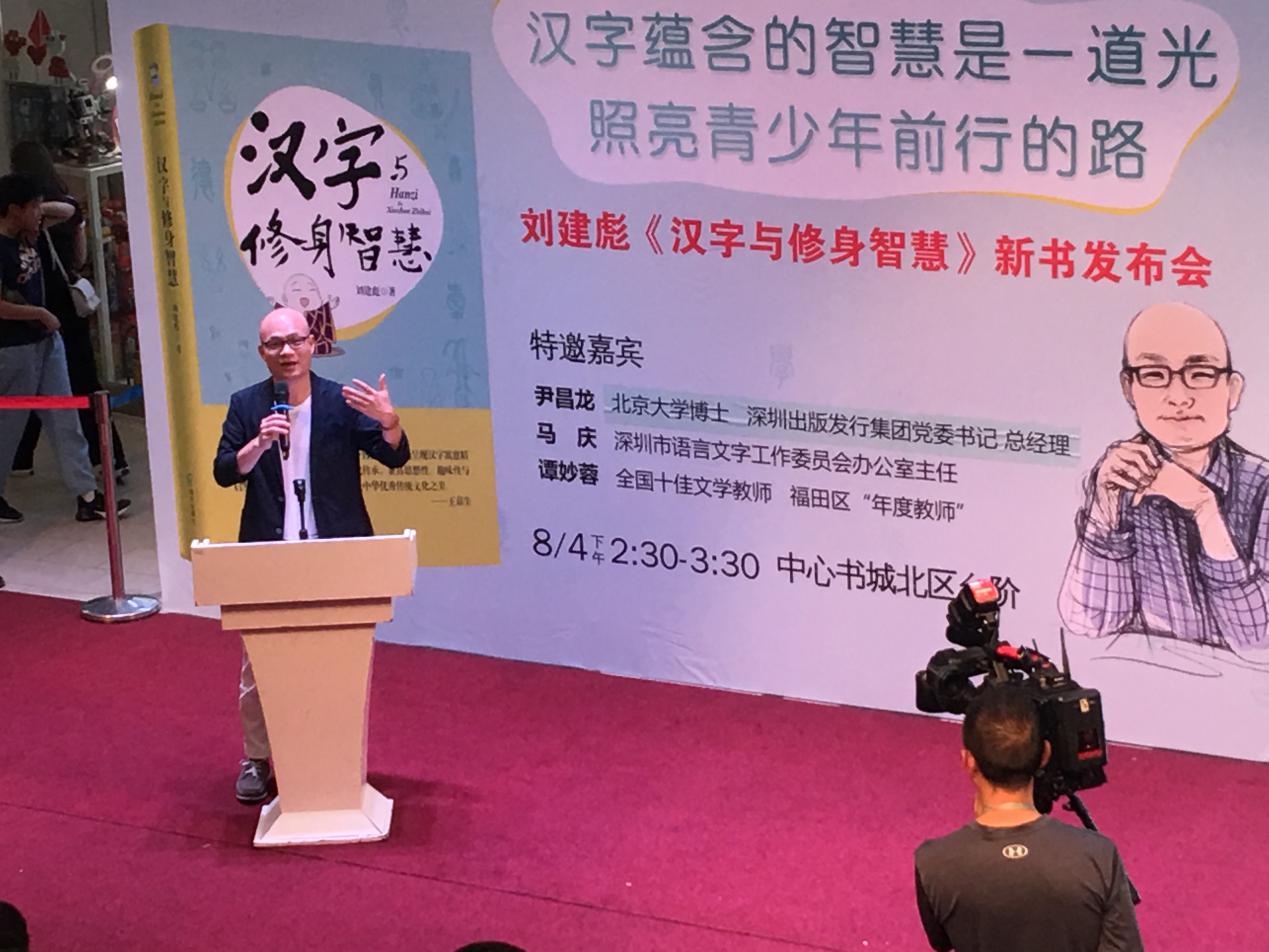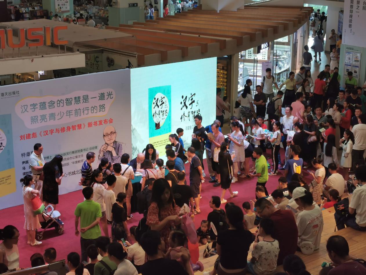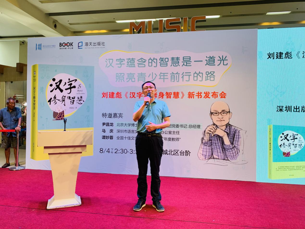 深圳新聞網(wǎng)訊 8月4日下午,壹讀書會創(chuàng)始人、知名閱讀推廣人劉建彪《漢字與修身智慧》新書發(fā)布會在深圳書城中心城隆重召開,本次活動由海天出版社和深圳書城中心城共同舉辦,北京大學(xué)文學(xué)博士、深圳出版發(fā)行集團(tuán)黨委 書記、總經(jīng)理尹昌龍,深圳市語言文字工作委員會辦公室主任馬慶,全國十佳文學(xué)教師、福田區(qū)“年度教師”譚妙蓉三位嘉賓蒞臨現(xiàn)場并致辭。本次新書發(fā)布受到市民的熱烈追捧,活動開始前中心書城北區(qū)臺階、過道以及走廊或坐著或站著翹首以盼的閱讀愛好者。