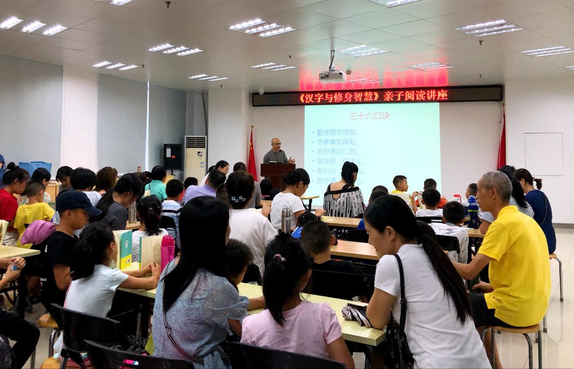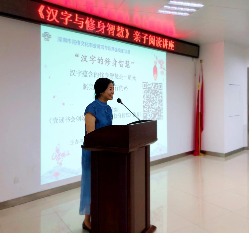 8月23日,首場(chǎng)公益講座“漢字蘊(yùn)含的修身智慧是一道光,照亮青少年前行的路”在龍湖社區(qū)黨群服務(wù)中心舉辦。講座由深圳市閱讀聯(lián)合會(huì)、深圳市壹書(shū)文化傳播有限責(zé)任公司、龍湖社區(qū)黨委共同主辦。講座開(kāi)始前,活動(dòng)室坐滿(mǎn)了對(duì)傳統(tǒng)文化感興趣的青少年和他們的家人。每位小朋友都拿到了工作人員發(fā)放的《漢字與修身智慧》一書(shū),并在家長(zhǎng)的陪同下迫不及待翻開(kāi)書(shū)籍,感受其中圖文并茂的漢字故事。龍湖社區(qū)黨委羅黎靜書(shū)記擔(dān)任本次講座的主持人,通過(guò)話家常開(kāi)場(chǎng),告訴聽(tīng)眾漢字蘊(yùn)含的智慧無(wú)窮無(wú)盡,點(diǎn)燃了在場(chǎng)的家長(zhǎng)和小朋友們與主講嘉賓互動(dòng)的激情。