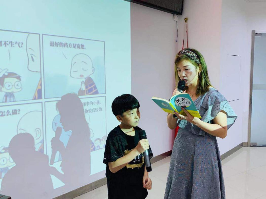現(xiàn)場(chǎng)親子通過(guò)修身口訣總體把握了書(shū)籍所選的三十六個(gè)漢字,也初步體會(huì)到漢字蘊(yùn)含的修身智慧。接著,在主講人的邀請(qǐng)下,參加活動(dòng)的親子一一上臺(tái),對(duì)照書(shū)中的漢字漫畫(huà)進(jìn)行角色扮演,展開(kāi)親子對(duì)話的同時(shí)身臨其境感受漢字的哲思性。每一位小朋友上臺(tái)展演,或活潑開(kāi)朗、充滿(mǎn)自信地配合家長(zhǎng)完成對(duì)話,或羞怯地在現(xiàn)場(chǎng)聽(tīng)眾的掌聲鼓勵(lì)下突破自己。