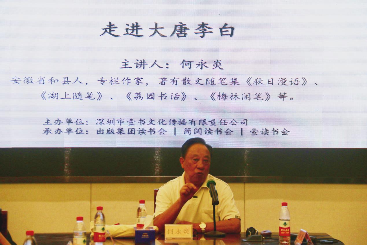深圳新聞網(wǎng)訊 2019年8月31日下午,“福田區(qū)第三屆文學(xué)精品有聲閱讀藝術(shù)節(jié)”之“唐詩三百首”專場活動(dòng)“走進(jìn)大唐李白”公益文化講座暨最美唐詩朗誦會(huì)在簡閱書吧香蜜湖店三樓多功能室成功舉辦?;顒?dòng)由深圳市壹書文化傳播有限責(zé)任公司、深圳市書城文化投資控股有限公司主辦,出版集團(tuán)讀書會(huì)、簡閱讀書會(huì)和壹讀書會(huì)承辦,本次活動(dòng)吸引了眾多對(duì)中國傳統(tǒng)文化富有興趣的詩歌愛好者,活動(dòng)開始前已座無虛席,靜候這場關(guān)于李白、關(guān)于詩歌的文化盛宴。