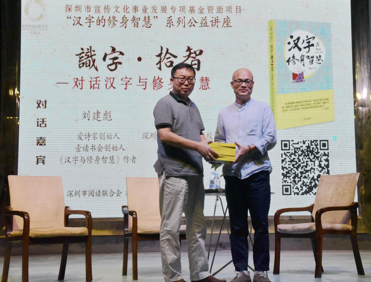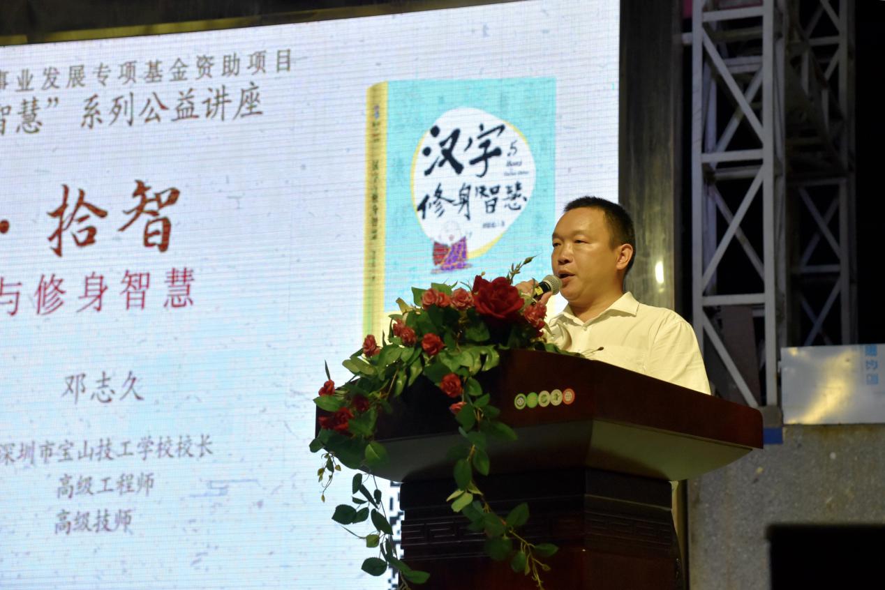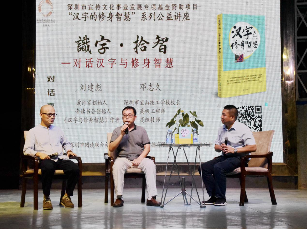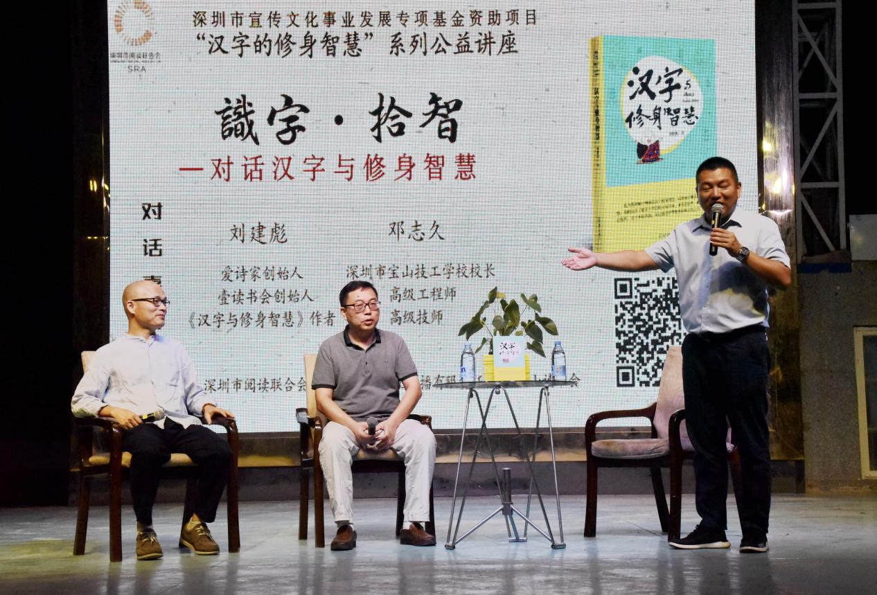深圳新聞網(wǎng)訊 9月18日晚上7時(shí),由深圳市閱讀聯(lián)合會(huì)、深圳市壹書(shū)文化傳播有限責(zé)任公司和寶山讀書(shū)會(huì)共同主辦的“‘識(shí)字拾智’——對(duì)話漢字與修身智慧”公益文化講座在寶山技工學(xué)校寶山大舞臺(tái)拉開(kāi)了序幕。據(jù)悉,這是由深圳市宣傳文化事業(yè)發(fā)展專(zhuān)項(xiàng)基金資助項(xiàng)目“漢字的修身智慧”的第三場(chǎng)公益文化講座,以劉建彪《漢字與修身智慧》新書(shū)分享為契機(jī),傳播漢字正能量,讓更多的青少年識(shí)字長(zhǎng)智,領(lǐng)略漢字文化之精妙。