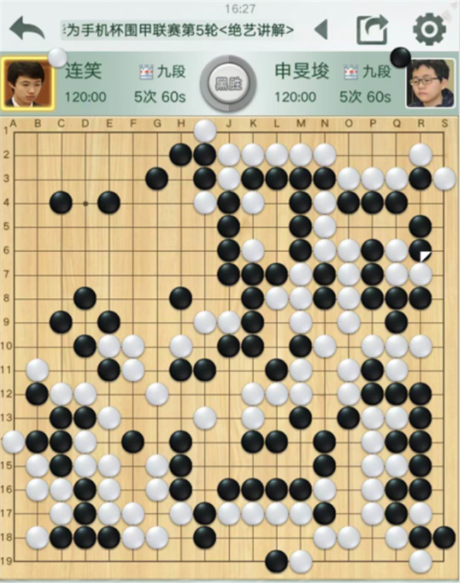 第二臺,主將時(shí)越執(zhí)黑對陣韓國第一人申真谞。黑棋左下角利用棄子獲得優(yōu)勢,左上一帶黑棋下的太緩局面接近。之后雙方錯(cuò)進(jìn)錯(cuò)出。最后黑右上選擇轉(zhuǎn)換判斷失誤,導(dǎo)致最后半目惜敗。