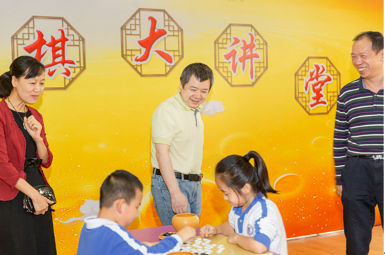 世界冠軍羅洗河、時越指導(dǎo)小朋友對局。