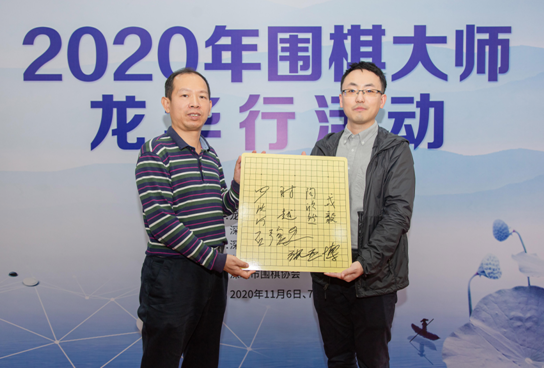 現(xiàn)場安排了圍棋大師們的離校的儀式,贈送圍棋世界冠軍簽名的棋盤留校紀(jì)念。