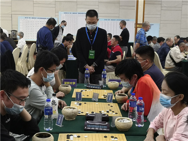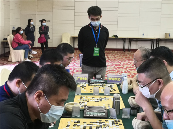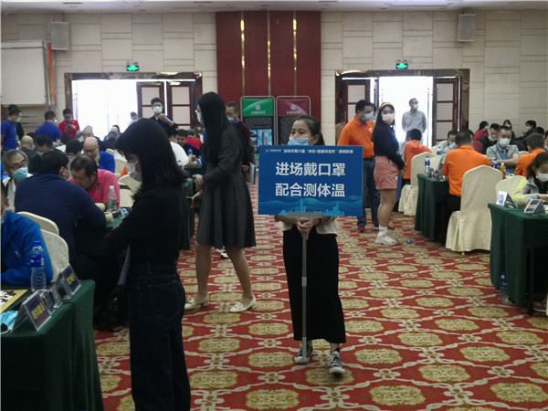 本屆聯(lián)賽在仍在抗疫的形勢(shì)下來(lái)之不易,賽事組委會(huì)非常珍惜,在防疫方面下了一番功夫。本次賽事執(zhí)行主任、著名國(guó)手梁偉棠九段介紹說(shuō):組委會(huì)在本次賽事《補(bǔ)充規(guī)定》中要求“本屆賽事因?yàn)橐咔榉揽匦枰?,全體人員必須佩戴口罩,掃碼入場(chǎng),并全程不得摘下口罩;體溫過(guò)高者謝絕入場(chǎng)”。記者觀察到,現(xiàn)場(chǎng)的防疫落實(shí)還是比較到位的,一是在賽場(chǎng)入口布置了三人團(tuán)隊(duì),加強(qiáng)了掃碼、體溫檢測(cè)、提醒大家戴口罩,凡是入場(chǎng)的隊(duì)員、工作人員以及觀戰(zhàn)的圍棋愛(ài)好者,都必須進(jìn)行體溫檢測(cè),符合正常體溫的方可入場(chǎng)參賽;二是要求參賽隊(duì)員和工作人員戴口罩;三是加強(qiáng)賽場(chǎng)巡查,對(duì)沒(méi)有自覺(jué)戴口罩的在場(chǎng)人員進(jìn)行勸導(dǎo)??傮w來(lái)說(shuō),賽場(chǎng)防疫秩序良好。