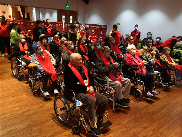 紀念活動的現(xiàn)場,頤康之家的老人們興致勃勃地觀看了演出。