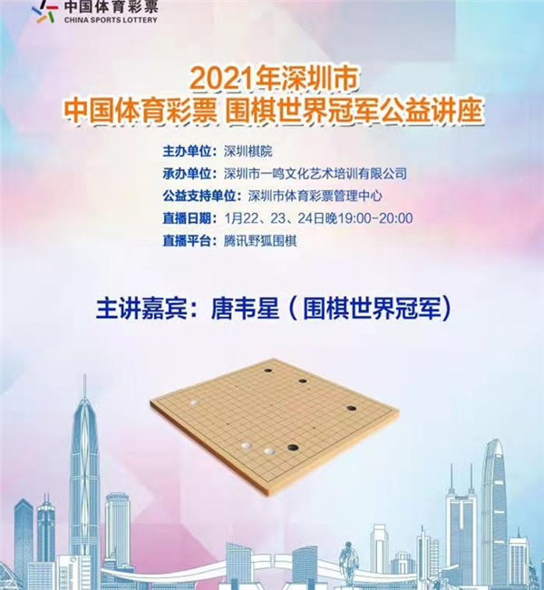 見圳客戶端?深圳新聞網(wǎng)訊(記者周錦春)2021年1月22、23、24日連續(xù)三天晚上,由深圳棋院主辦,深圳市一鳴文化藝術(shù)培訓(xùn)有限公司承辦,深圳市體育彩票管理中心支持的“2021年深圳市中國(guó)體育彩票圍棋世界冠軍公益講座”在騰訊野狐圍棋平臺(tái)線上舉行。