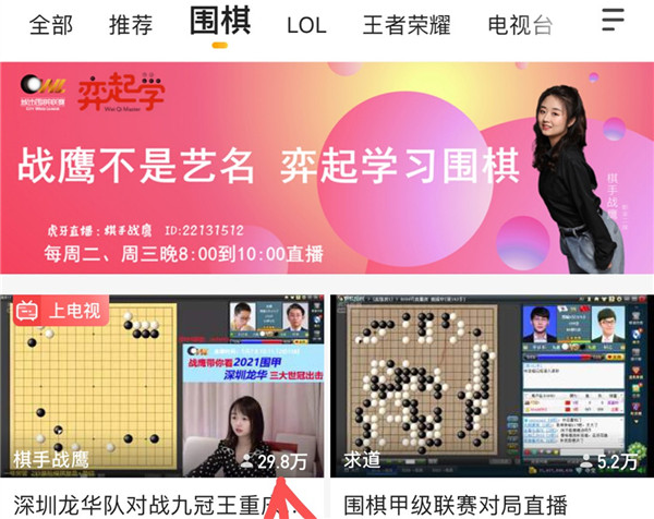 今日虎牙直播,職業(yè)女棋手戰(zhàn)鷹繼續(xù)現(xiàn)場講解點(diǎn)評(píng)深圳龍華隊(duì)對局情況,觀看人數(shù)又創(chuàng)新高,直沖30萬大關(guān)。賽后,“龍哥”時(shí)越來到直播室,與迷們一起分享了對局過程中的心路歷程。戰(zhàn)鷹作為圍棋知名主播,是深圳龍華隊(duì)網(wǎng)上直播合作人,為龍華隊(duì)帶來了一波接一波的人氣,直播室十分熱鬧!喜歡的朋友接著看吧!不過,大家要記得:明天圍甲休息一天,接著三天會(huì)連播。